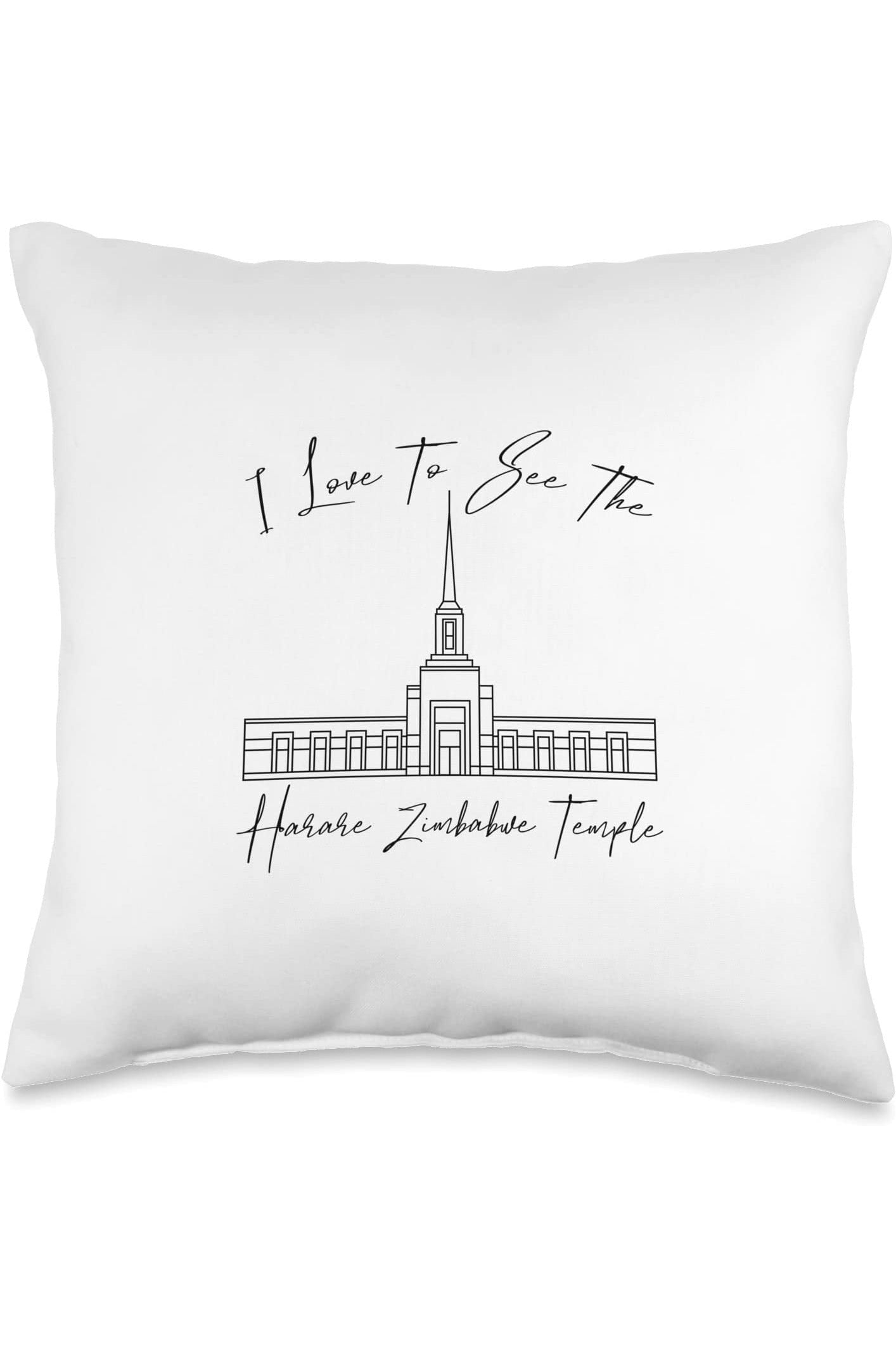 Harare Zimbabwe Temple Throw Pillows - Calligraphy Style (English) US
